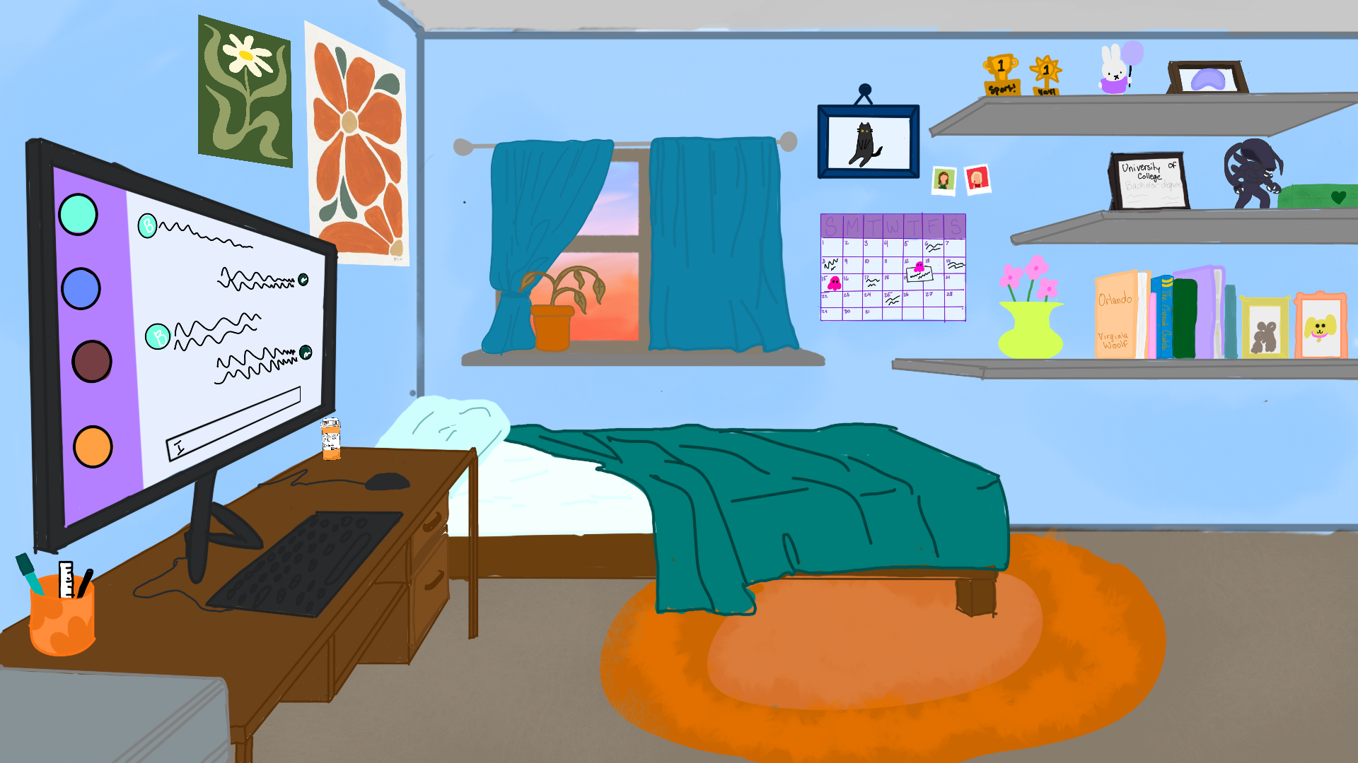 All of the background was hand-drawn and illustrated by me, as well as the sound work. The character sprites were created and built in The Sims 4. While this may create a "thrown together" or "unprofessional" look, this was incredibly intentional in the development process by Rea and I. We did not want to use AI in the creation of the game where it was avoidable. So, while I am not a trained or skilled artist, I learned the new skills needed.